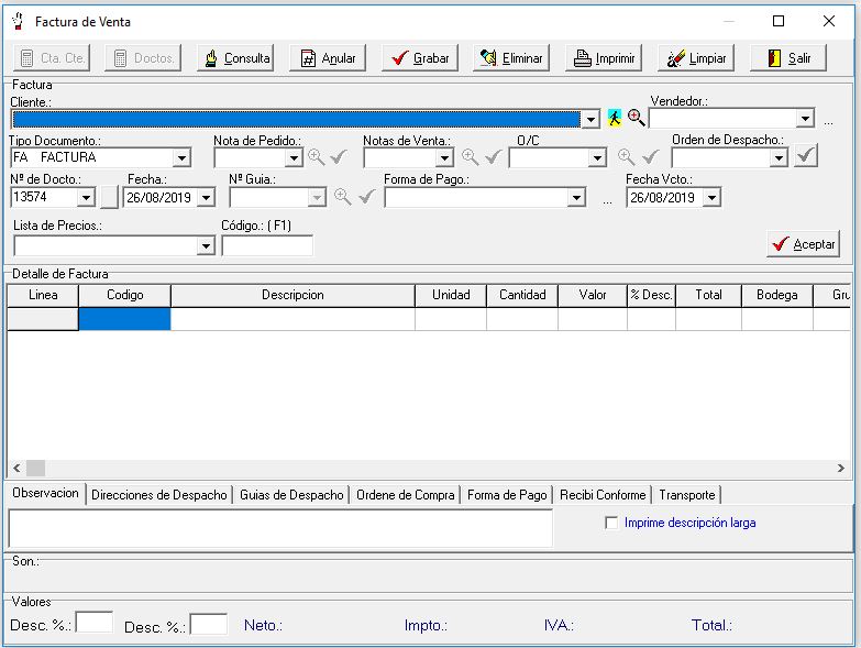 Generacion de factura electrónica.